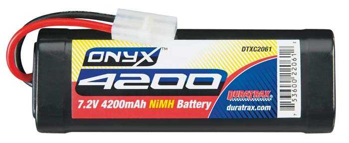 INCLUDES: DuraTrax NiMH 7.2V 4200mAh Onyx Stick Battery with Standard