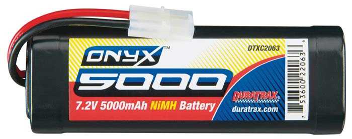 INCLUDES: DuraTrax NiMH 7.2V 5000mAh Onyx Stick Battery with Standard